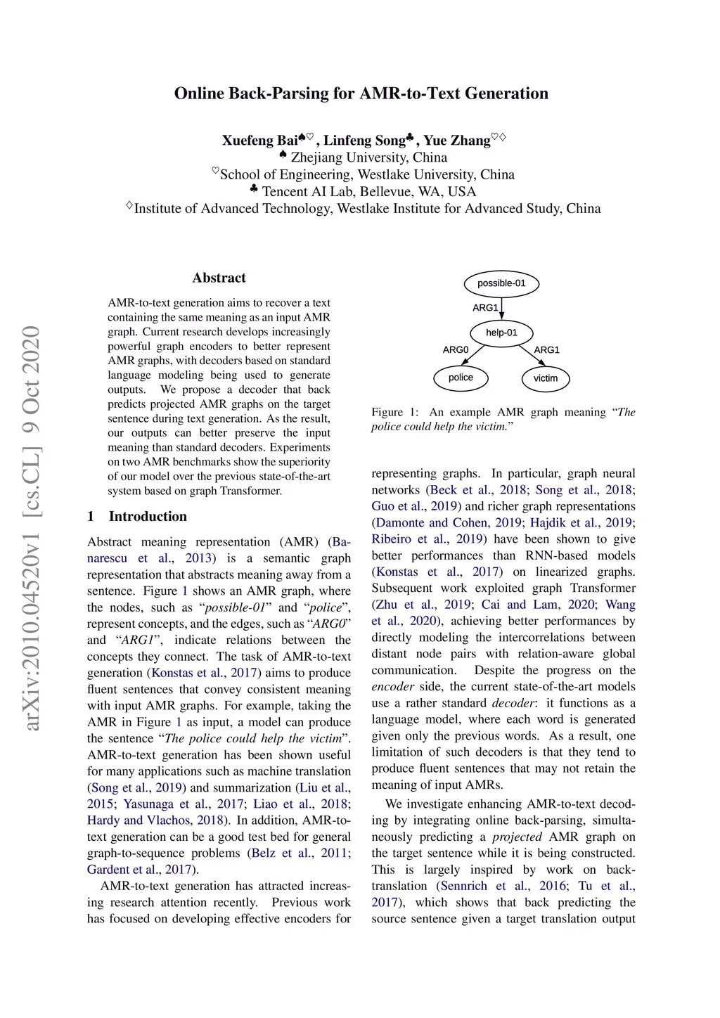 Online Back-Parsing for AMR-to-Text Generation