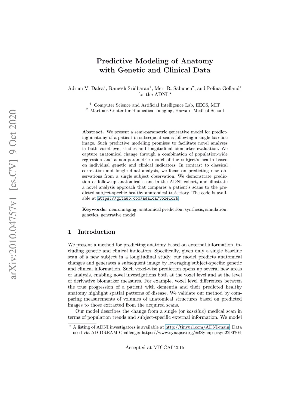 Predictive Modeling of Anatomy with Genetic and Clinical Data