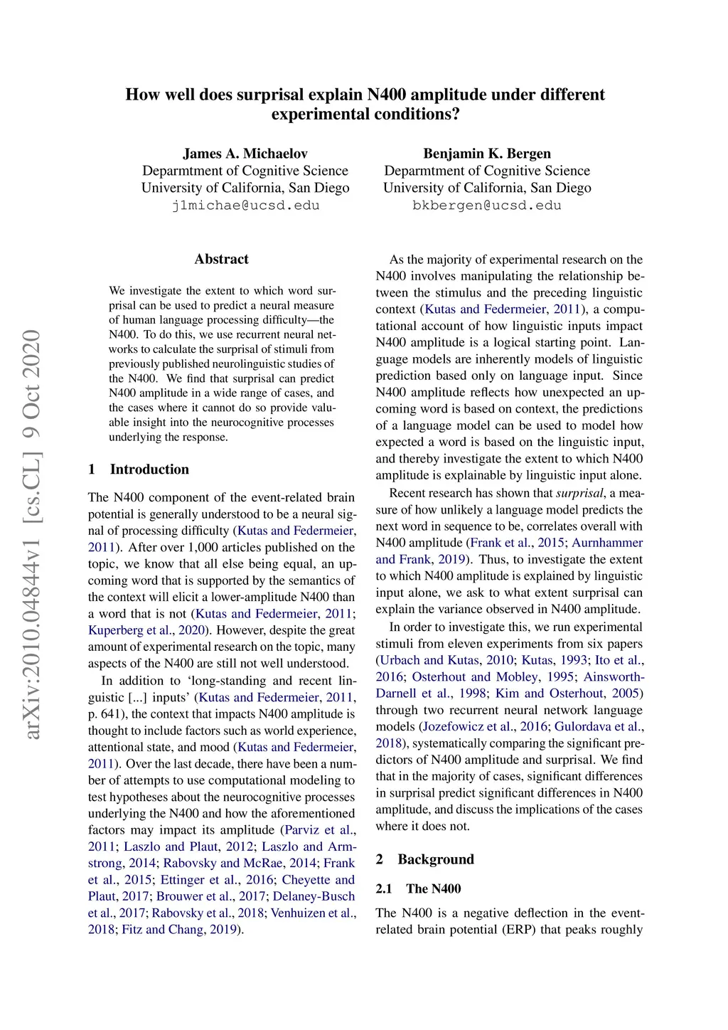 We investigate the extent to which word surprisal can be used to predict a neural measure of human language processing difficulty - the N400. To do this, we use recurrent neural networks to calculate the surprisal of stimuli from previously published neurolinguistic studies of the N400. We find that surprisal can predict N400 amplitude in a wide range of cases, and the cases where it cannot do so provide valuable insight into the neurocognitive processes underlying the response.