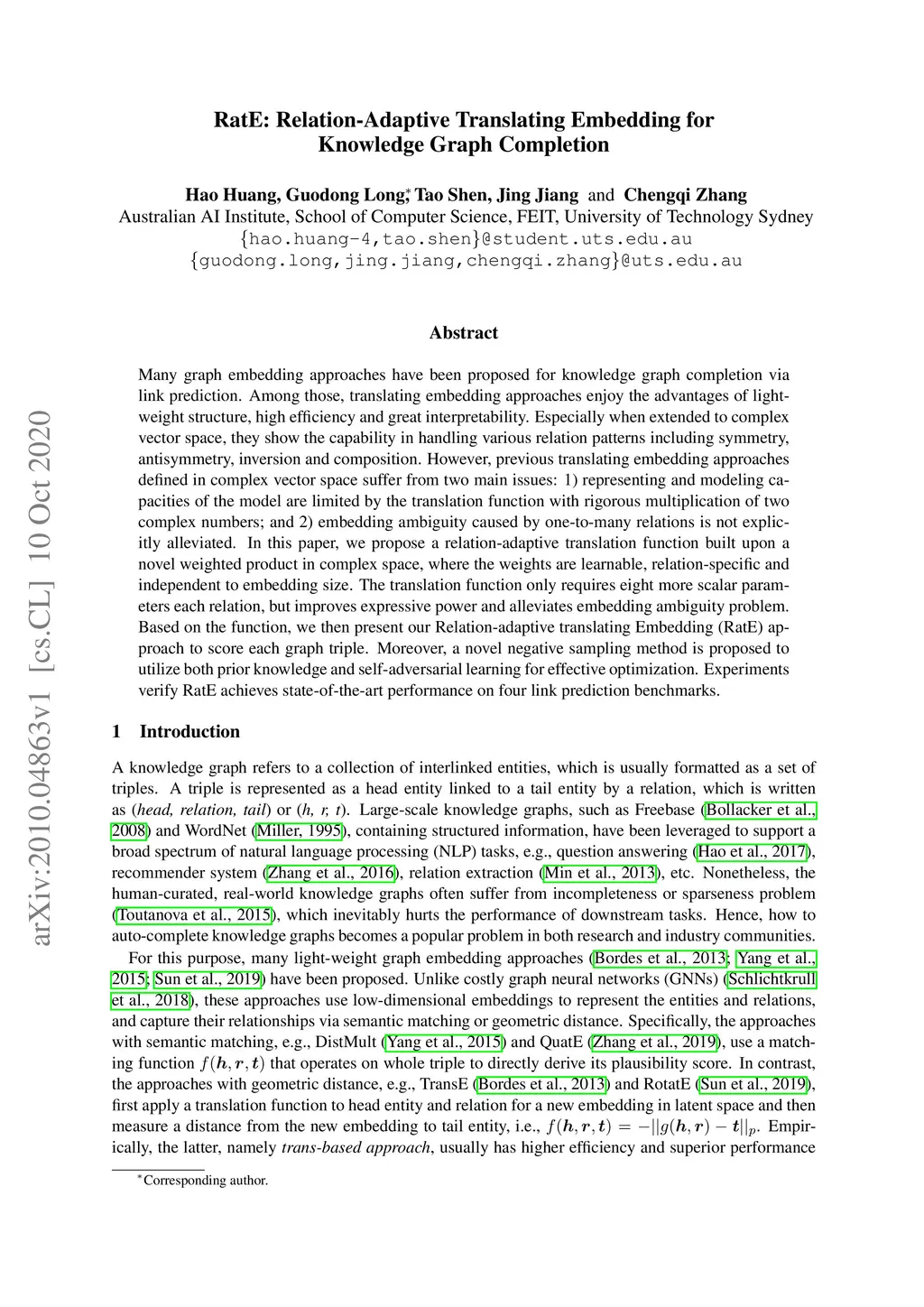 RatE: Relation-Adaptive Translating Embedding for Knowledge Graph