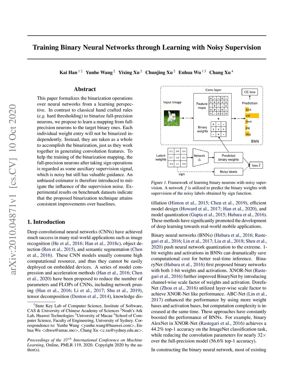 Training Binary Neural Networks through Learning with Noisy Supervision