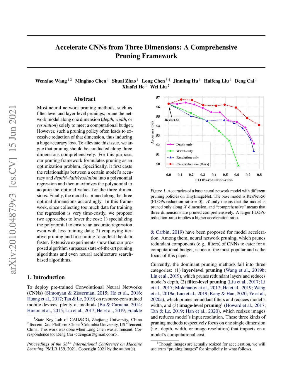 Accelerate CNNs from Three Dimensions: A Comprehensive Pruning Framework