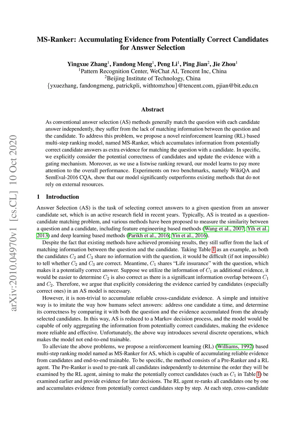MS-Ranker: Accumulating Evidence from Potentially Correct Candidates for
