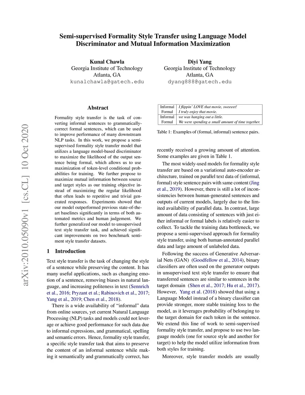 Semi-supervised Formality Style Transfer using Language Model