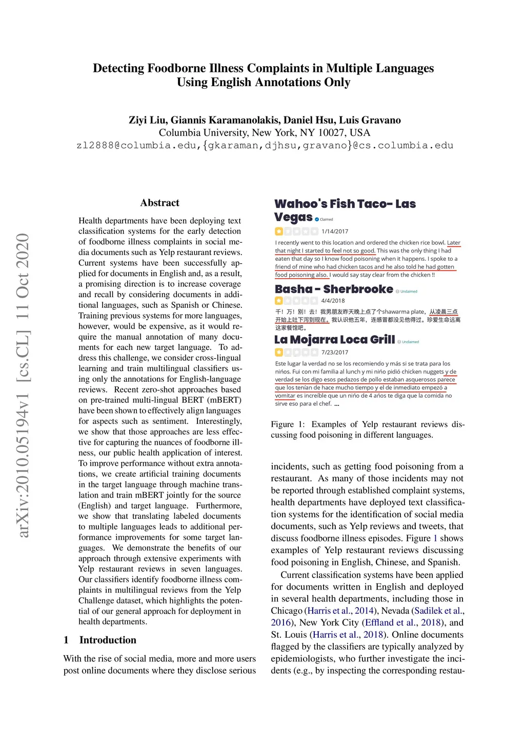 Detecting Foodborne Illness Complaints in Multiple Languages Using