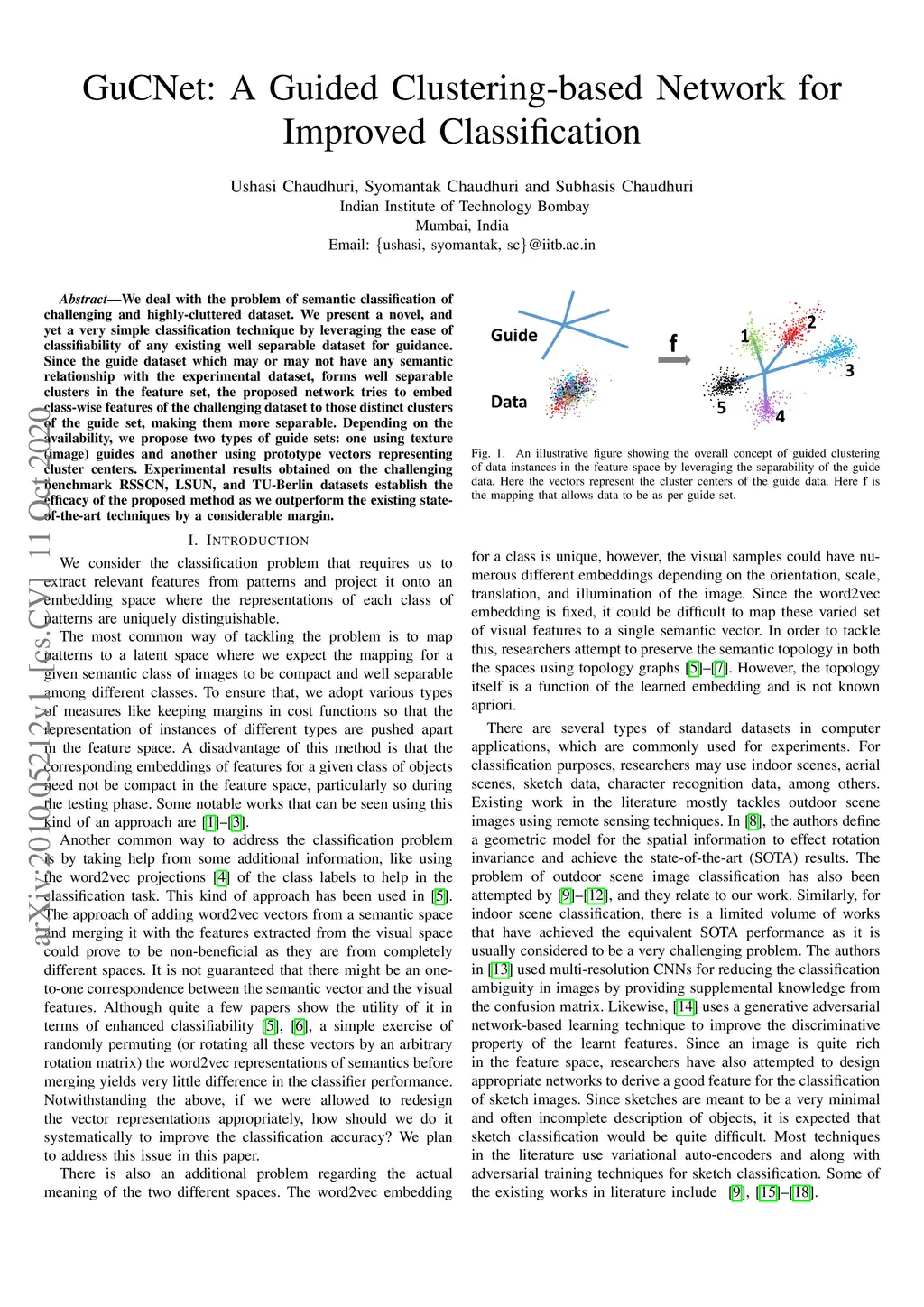 We deal with the problem of semantic classification of challenging and highly-cluttered dataset. We present a novel, and yet a very simple classification technique by leveraging the ease of classifiability of any existing well separable dataset for guidance. Since the guide dataset which may or may not have any semantic relationship with the experimental dataset, forms well separable clusters in the feature set, the proposed network tries to embed class-wise features of the challenging dataset to those distinct clusters of the guide set, making them more separable. Depending on the availability, we propose two types of guide sets: one using texture (image) guides and another using prototype vectors representing cluster centers. Experimental results obtained on the challenging benchmark RSSCN, LSUN, and TU-Berlin datasets establish the efficacy of the proposed method as we outperform the existing state-of-the-art techniques by a considerable margin.