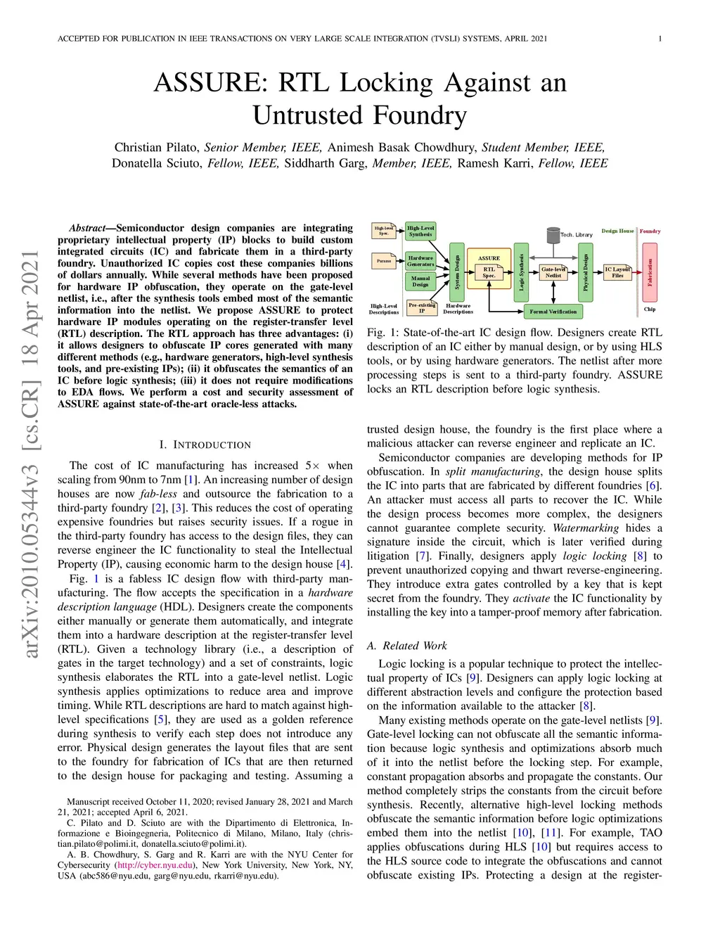 ASSURE: RTL Locking Against an Untrusted Foundry