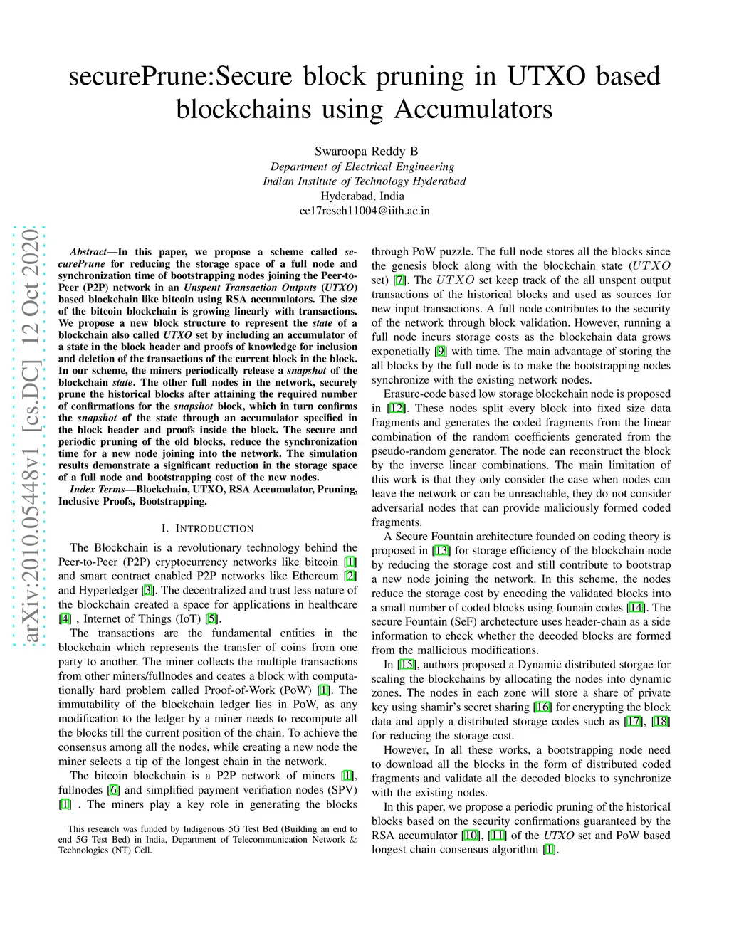 securePrune:Secure block pruning in UTXO based blockchains using