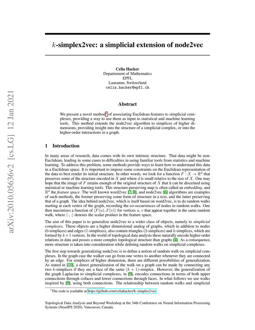 k-simplex2vec: a simplicial extension of node2vec