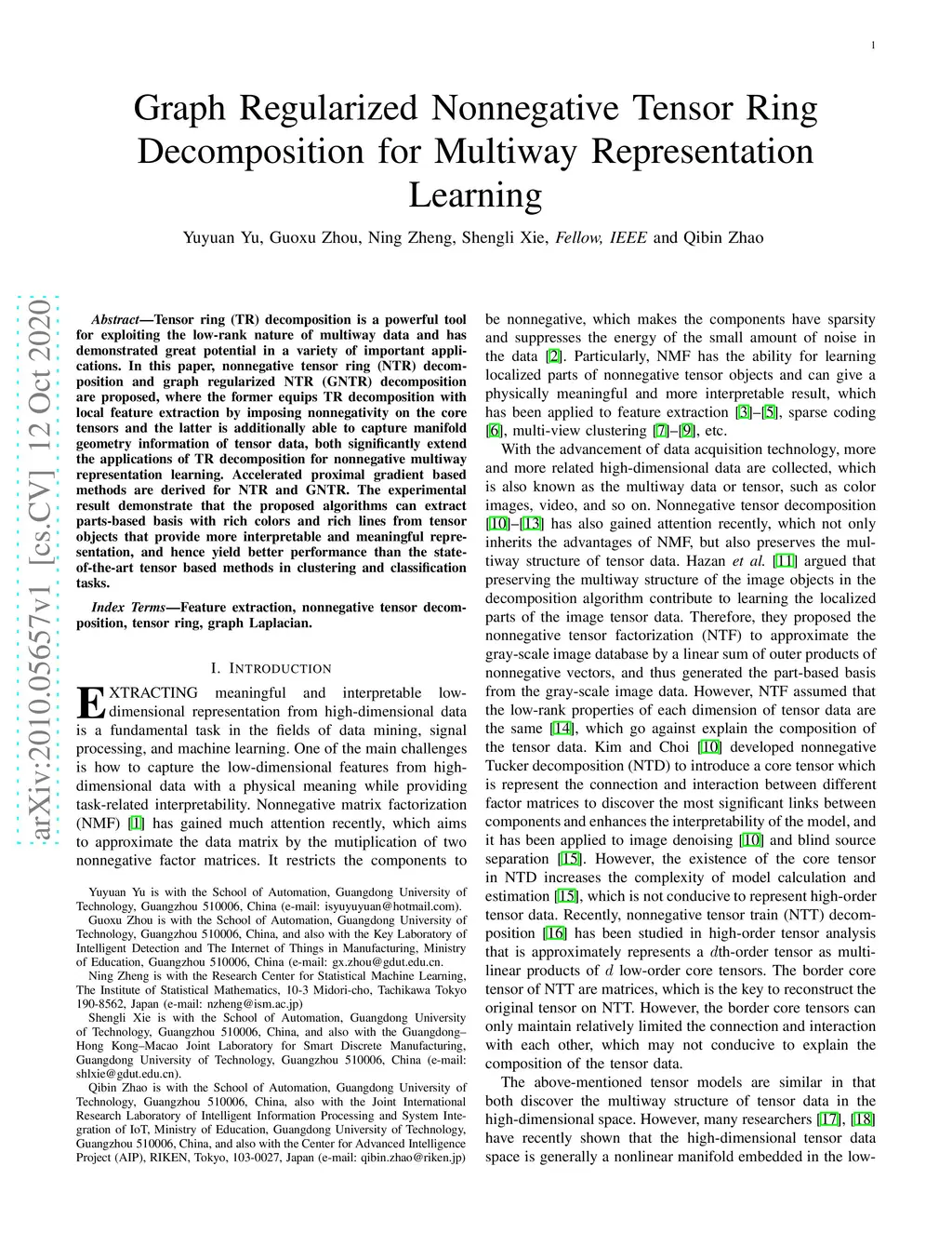 Graph Regularized Nonnegative Tensor Ring Decomposition for Multiway