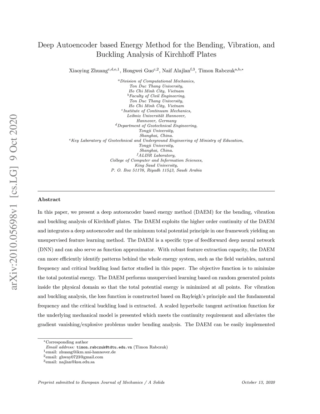 Deep Autoencoder based Energy Method for the Bending, Vibration, and
