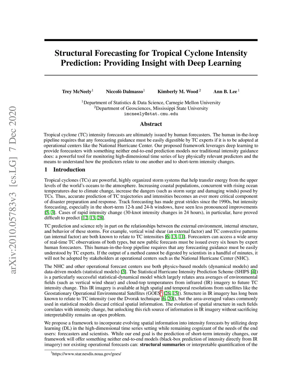 Structural Forecasting for Tropical Cyclone Intensity Prediction: