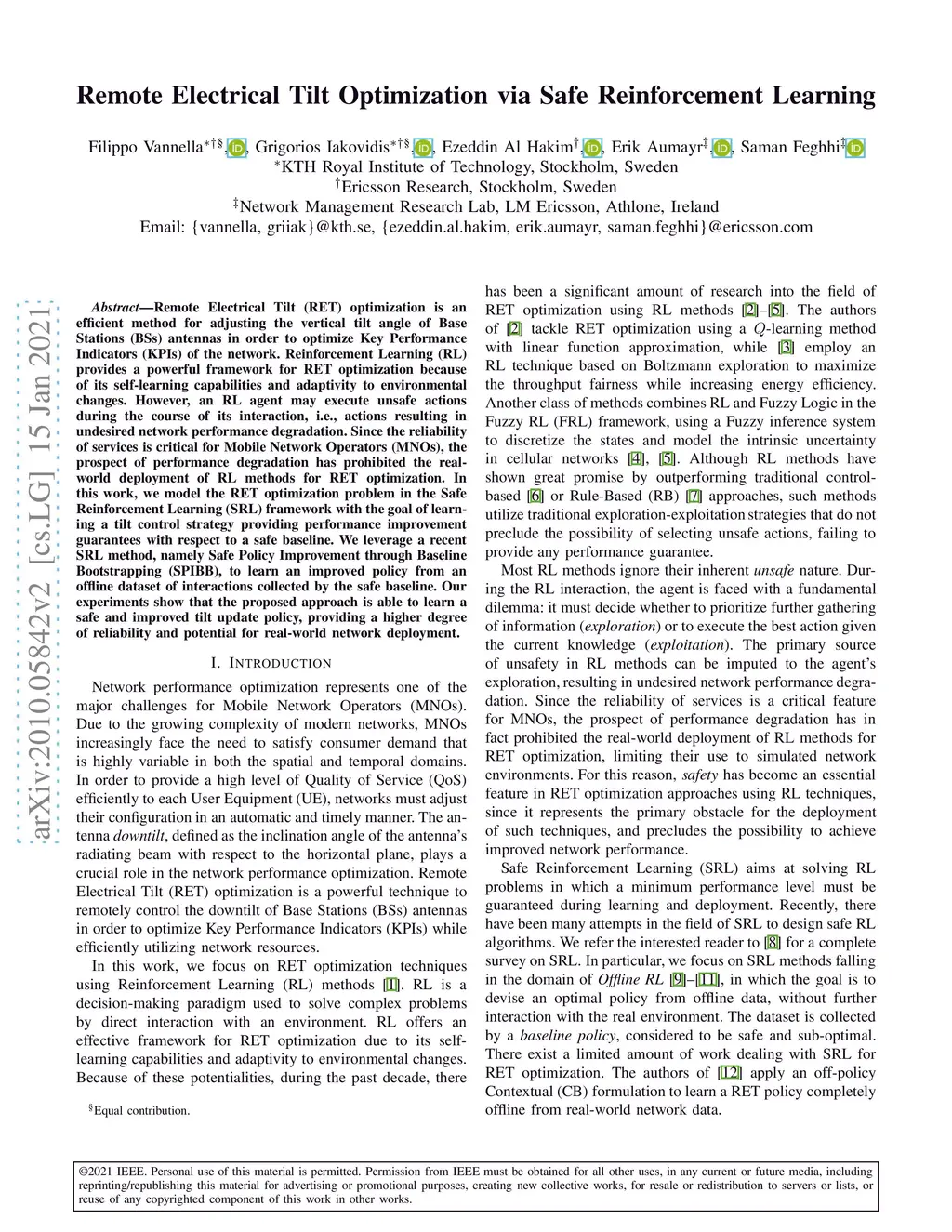 Remote Electrical Tilt Optimization via Safe Reinforcement Learning