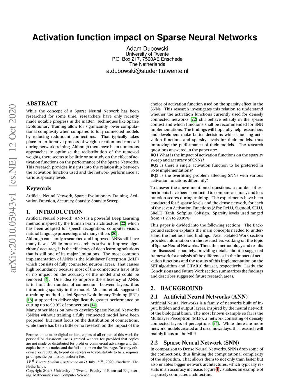 Activation function impact on Sparse Neural Networks