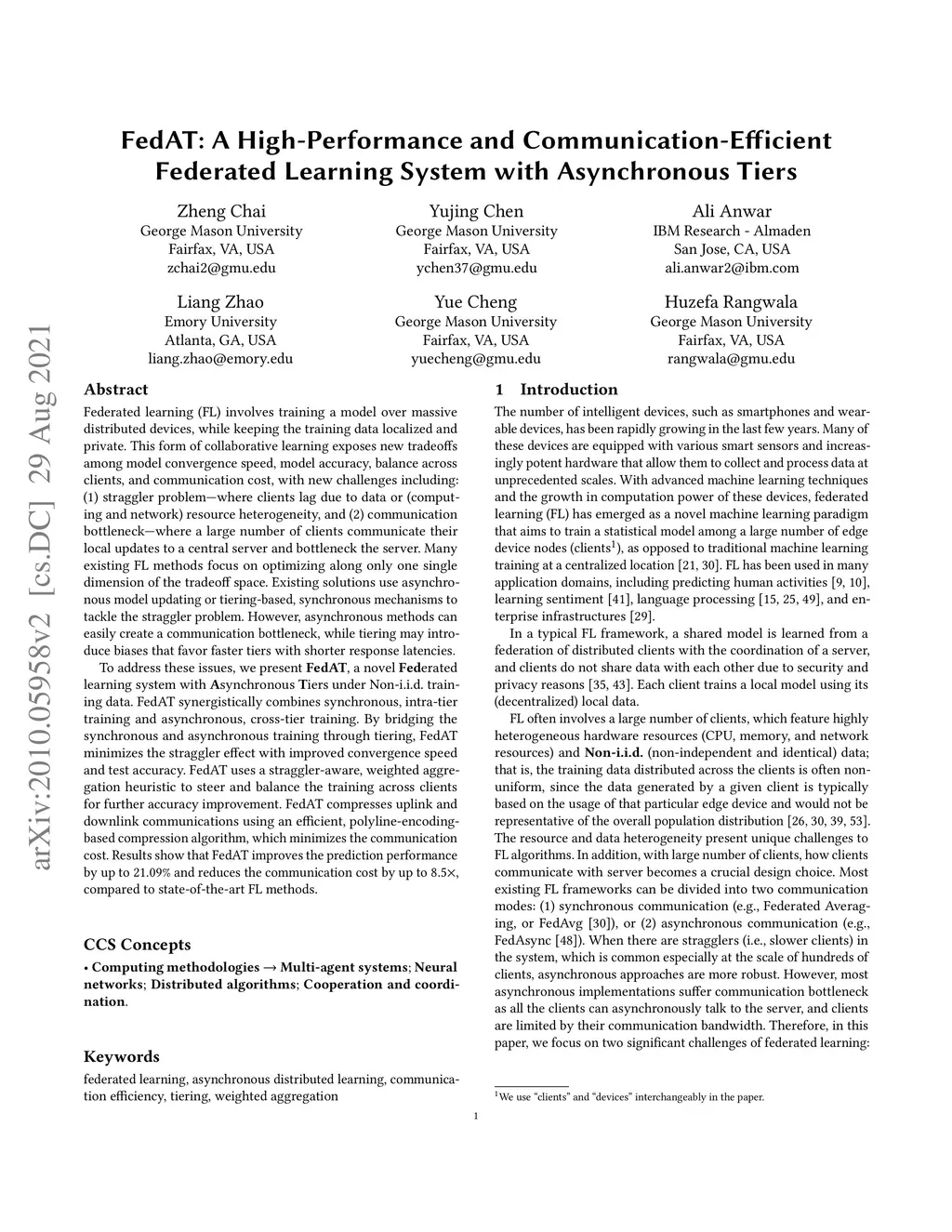 FedAT: A High-Performance and Communication-Efficient Federated Learning