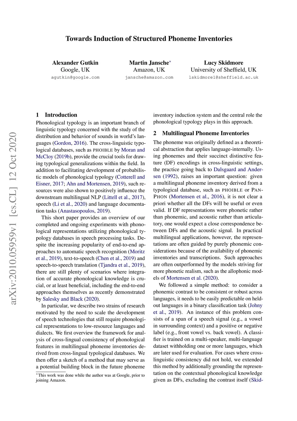 This extended abstract surveying the work on phonological typology was prepared for "SIGTYP 2020: The Second Workshop on Computational Research in Linguistic Typology" to be held at EMNLP 2020.