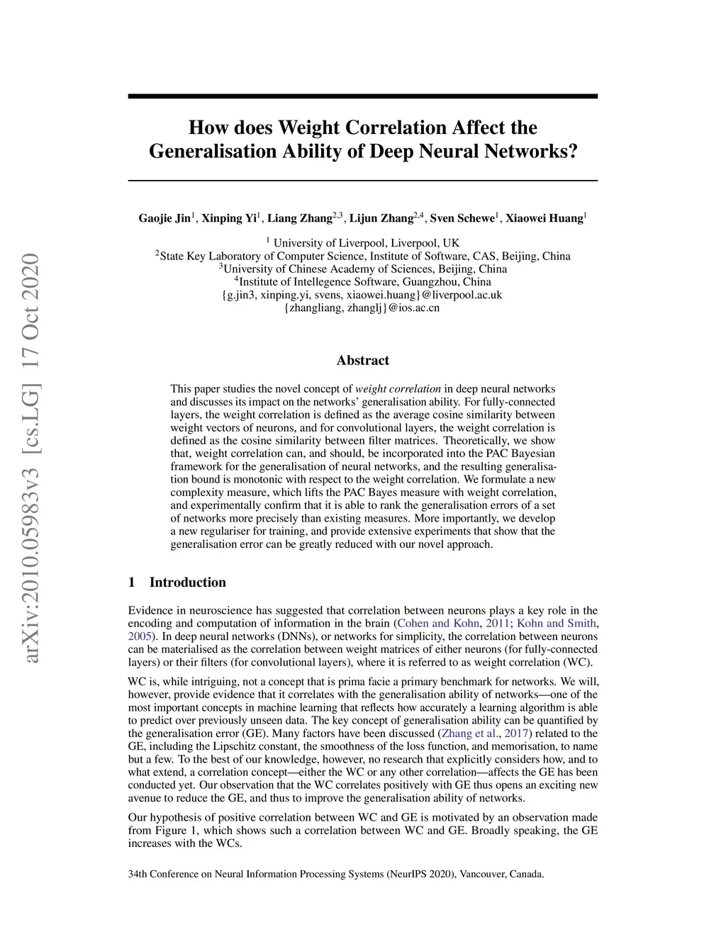 How does Weight Correlation Affect the Generalisation Ability of Deep
