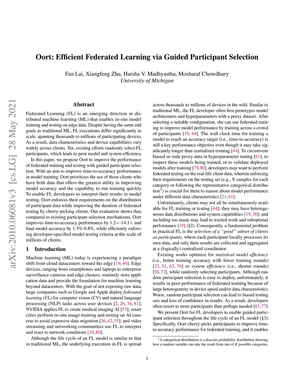 Oort: Efficient Federated Learning via Guided Participant Selection