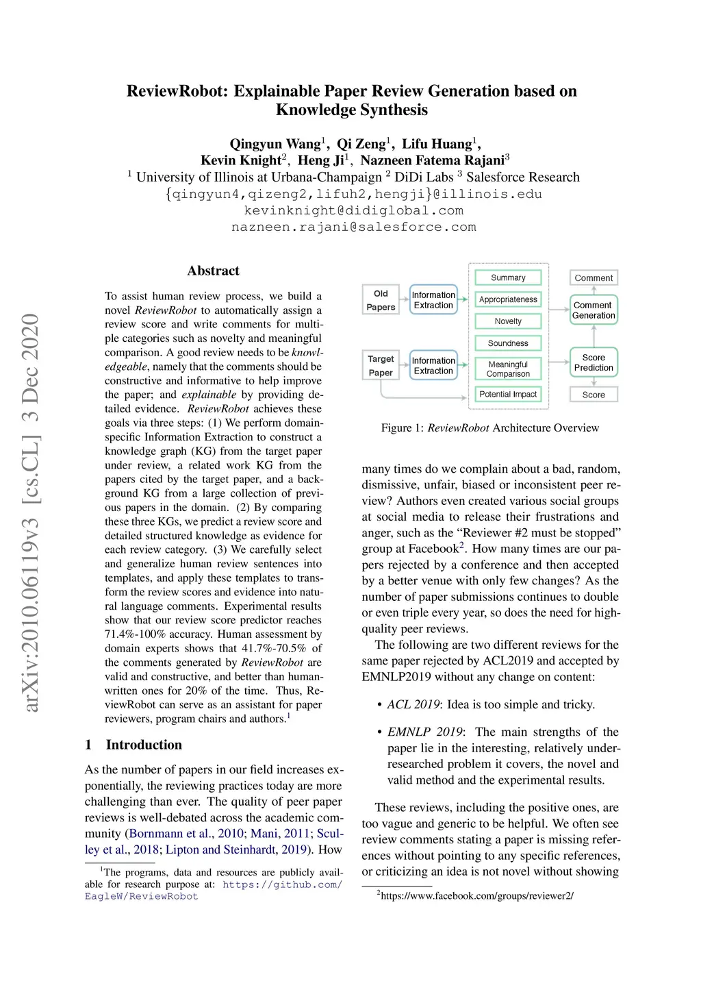 ReviewRobot: Explainable Paper Review Generation based on Knowledge