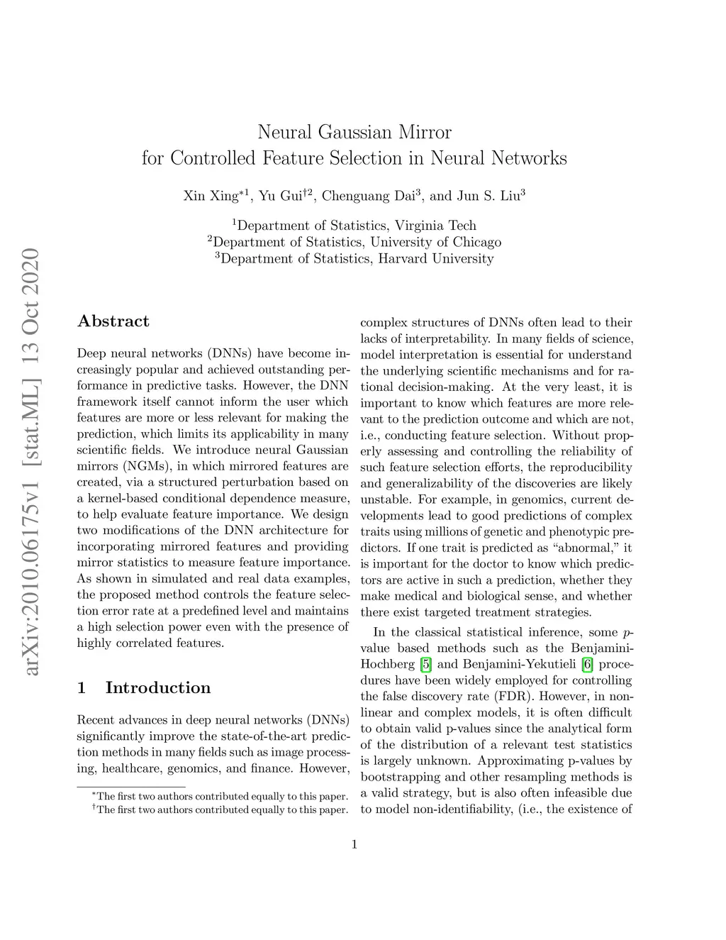 Neural Gaussian Mirror for Controlled Feature Selection in Neural