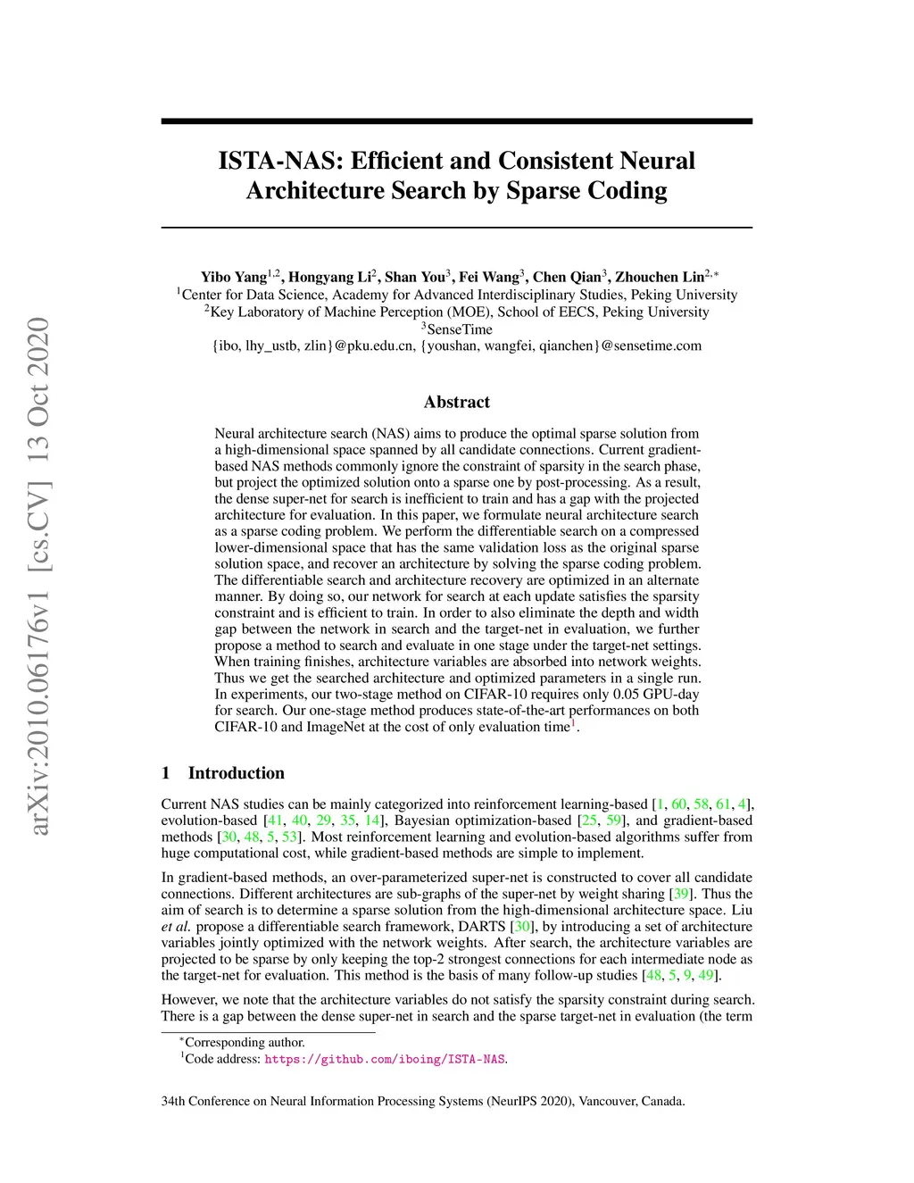 ISTA-NAS: Efficient and Consistent Neural Architecture Search by Sparse