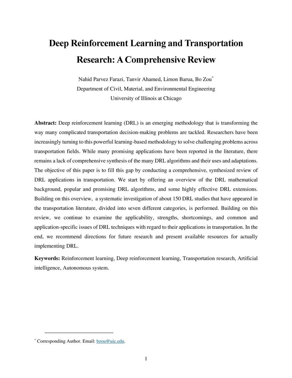 Deep Reinforcement Learning and Transportation Research: A Comprehensive