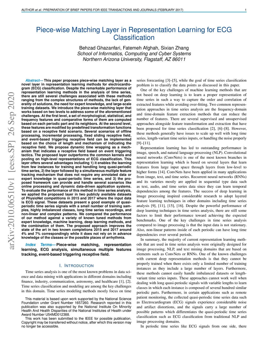 Piece-wise Matching Layer in Representation Learning for ECG