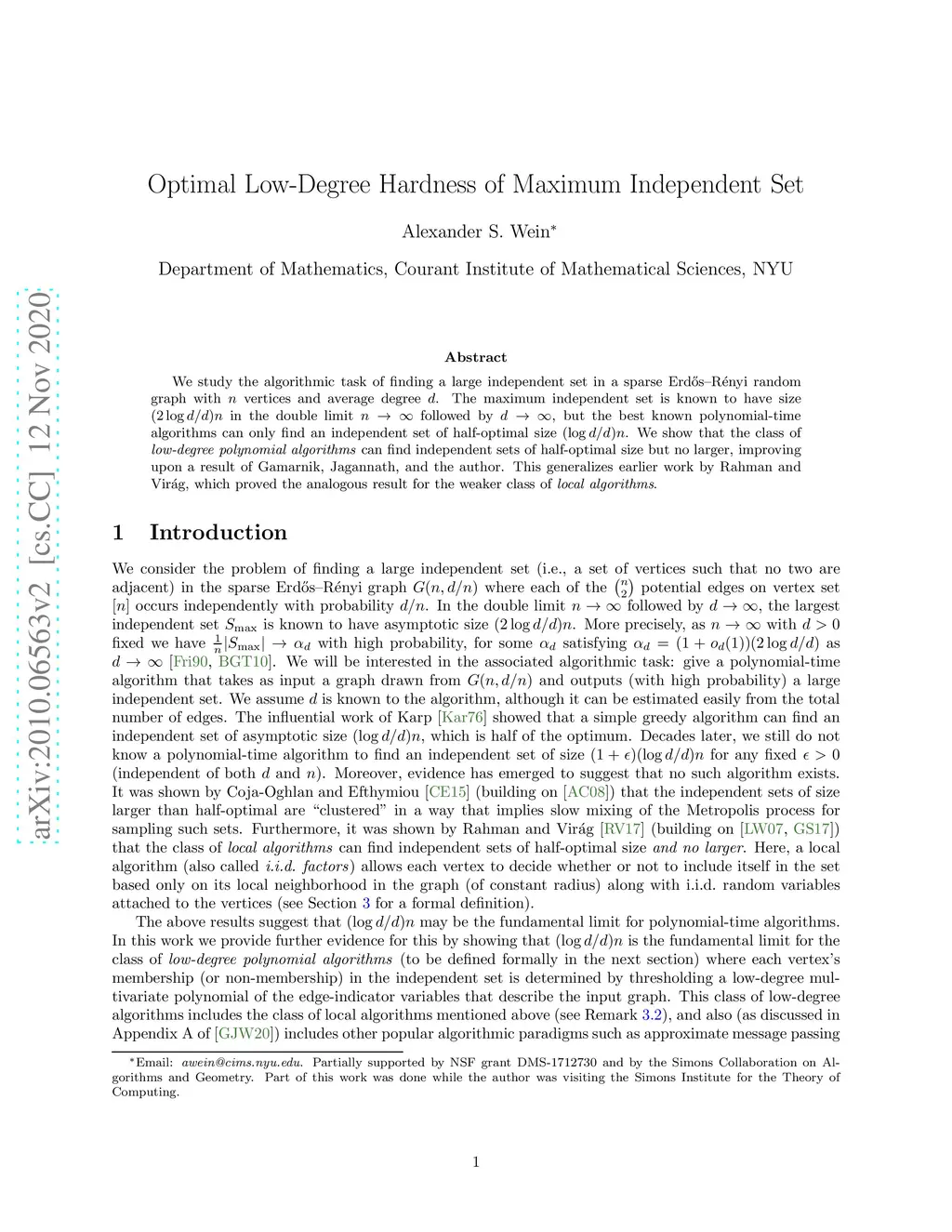 We study the algorithmic task of finding a large independent set in a sparse Erd\H{o}s-R\'{e}nyi random graph with vertices and average degree . The maximum independent set is known to have size in the double limit followed by , but the best known polynomial-time algorithms can only find an independent set of half-optimal size . We show that the class of low-degree polynomial algorithms can find independent sets of half-optimal size but no larger, improving upon a result of Gamarnik, Jagannath, and the author. This generalizes earlier work by Rahman and Vir\ág, which proved the analogous result for the weaker class of local algorithms.