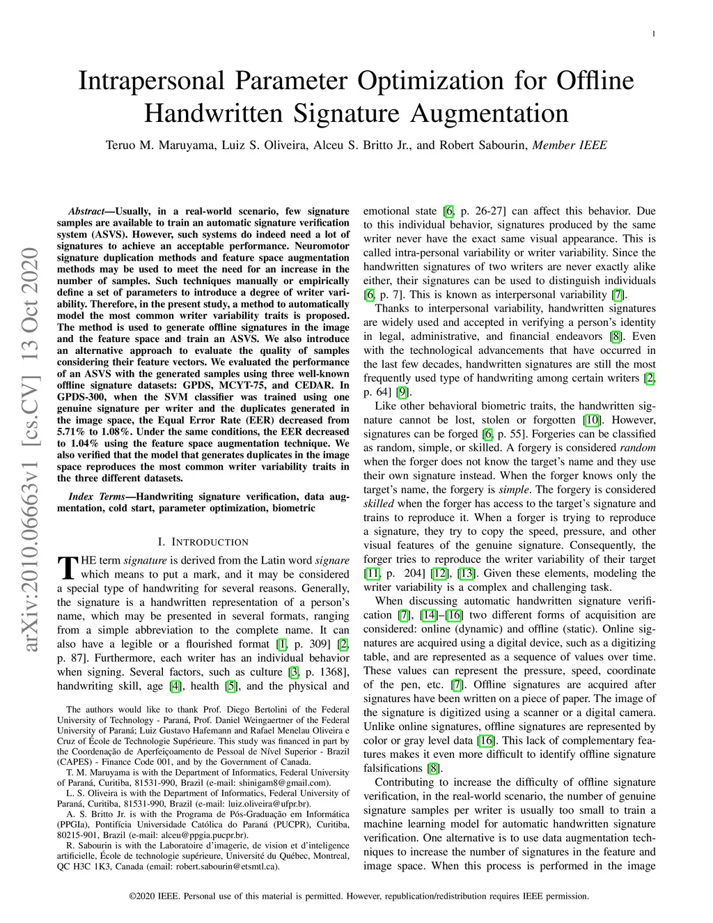 Intrapersonal Parameter Optimization for Offline Handwritten Signature