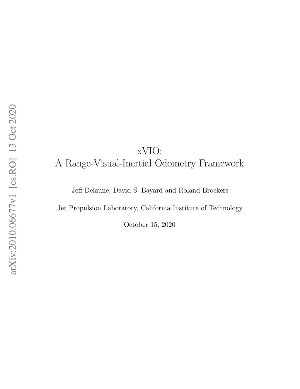 xVIO is a range-visual-inertial odometry algorithm implemented at JPL. It has been demonstrated with closed-loop controls on-board unmanned rotorcraft equipped with off-the-shelf embedded computers and sensors. It can operate at daytime with visible-spectrum cameras, or at night time using thermal infrared cameras. This report is a complete technical description of xVIO. It includes an overview of the system architecture, the implementation of the navigation filter, along with the derivations of the Jacobian matrices which are not already published in the literature.