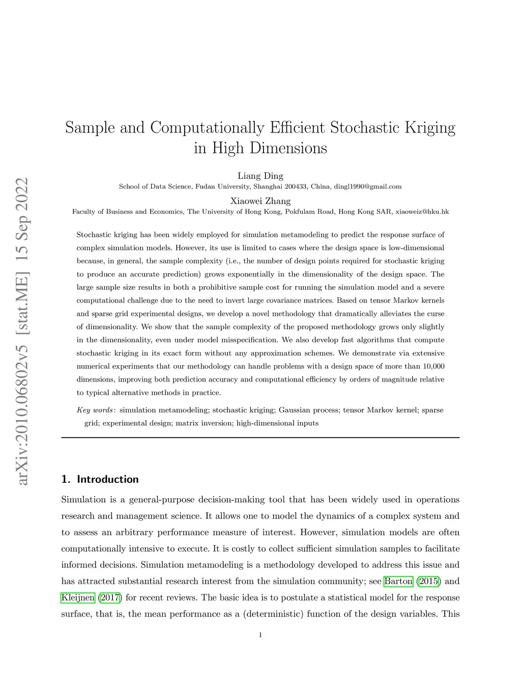 Sample and Computationally Efficient Stochastic Kriging in High
