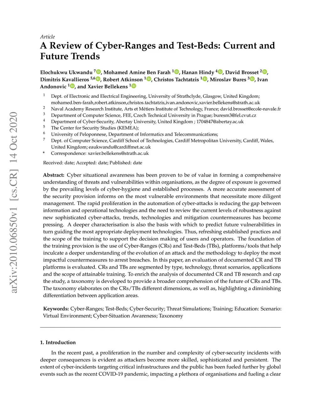 A Review of Cyber-Ranges and Test-Beds: Current and Future Trends