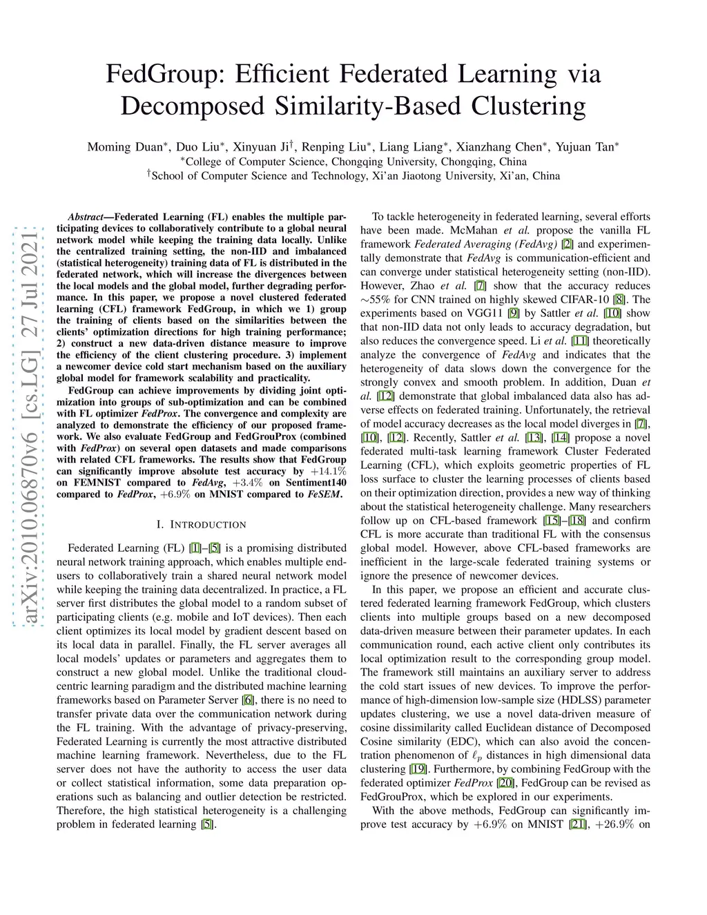FedGroup: Efficient Clustered Federated Learning via Decomposed