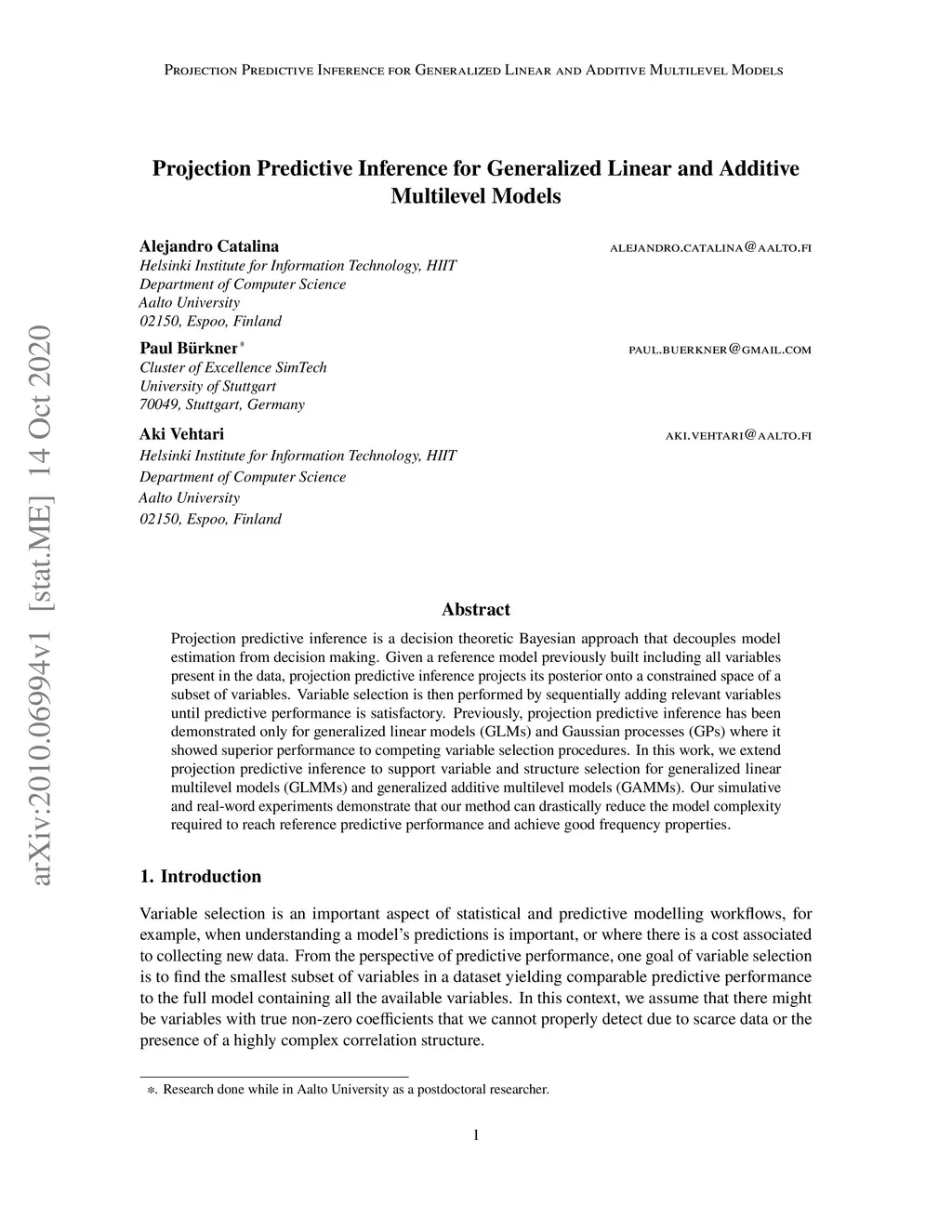 Projection predictive inference is a decision theoretic Bayesian approach that decouples model estimation from decision making. Given a reference model previously built including all variables present in the data, projection predictive inference projects its posterior onto a constrained space of a subset of variables. Variable selection is then performed by sequentially adding relevant variables until predictive performance is satisfactory. Previously, projection predictive inference has been demonstrated only for generalized linear models (GLMs) and Gaussian processes (GPs) where it showed superior performance to competing variable selection procedures. In this work, we extend projection predictive inference to support variable and structure selection for generalized linear multilevel models (GLMMs) and generalized additive multilevel models (GAMMs). Our simulative and real-word experiments demonstrate that our method can drastically reduce the model complexity required to reach reference predictive performance and achieve good frequency properties.