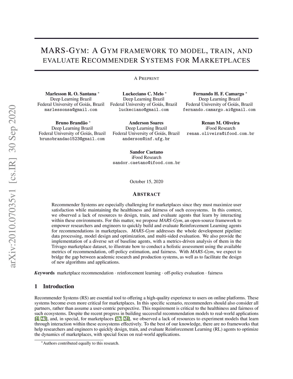 MARS-Gym: A Gym framework to model, train, and evaluate Recommender