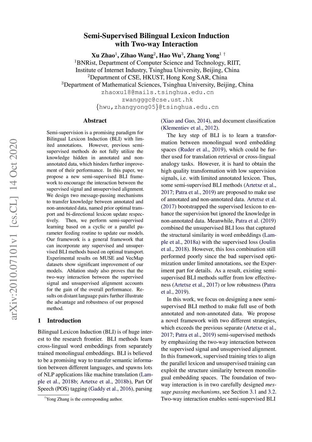 Semi-Supervised Bilingual Lexicon Induction with Two-way Interaction