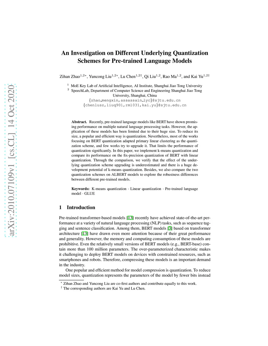 Recently, pre-trained language models like BERT have shown promising performance on multiple natural language processing tasks. However, the application of these models has been limited due to their huge size. To reduce its size, a popular and efficient way is quantization. Nevertheless, most of the works focusing on BERT quantization adapted primary linear clustering as the quantization scheme, and few works try to upgrade it. That limits the performance of quantization significantly. In this paper, we implement k-means quantization and compare its performance on the fix-precision quantization of BERT with linear quantization. Through the comparison, we verify that the effect of the underlying quantization scheme upgrading is underestimated and there is a huge development potential of k-means quantization. Besides, we also compare the two quantization schemes on ALBERT models to explore the robustness differences between different pre-trained models.