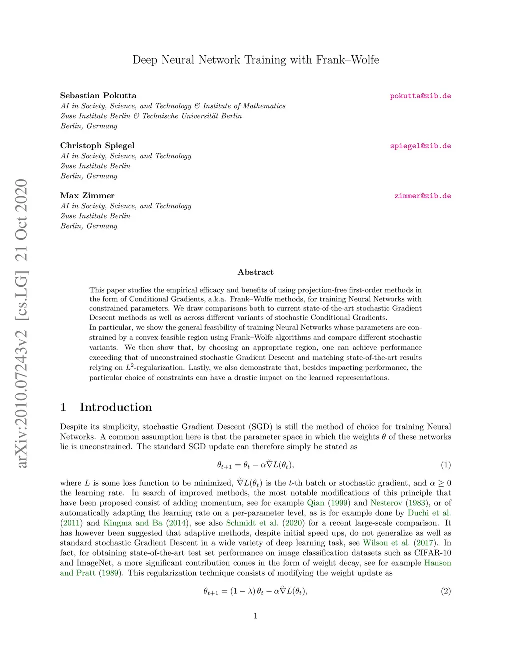 Deep Neural Network Training with Frank-Wolfe
