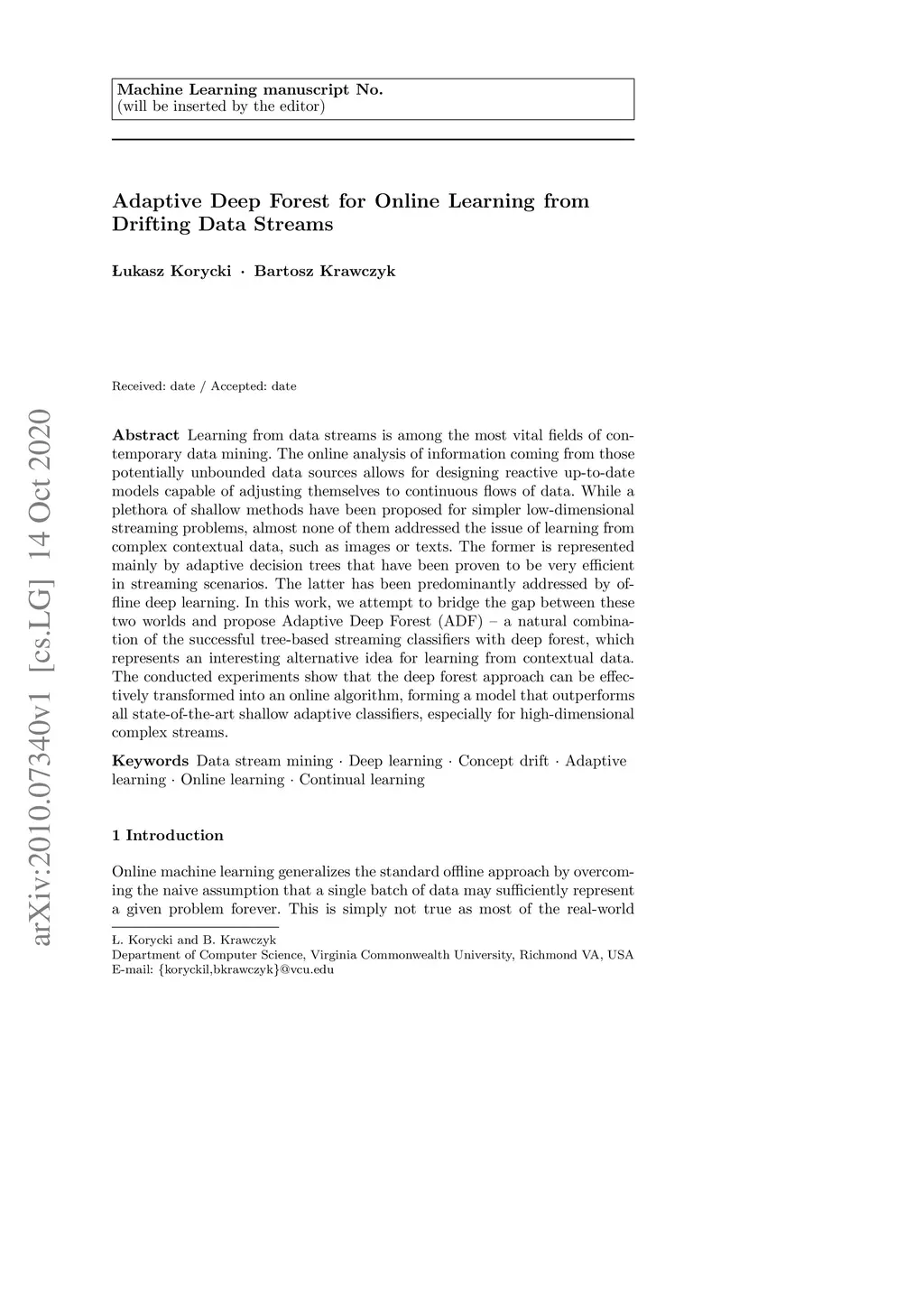 Adaptive Deep Forest for Online Learning from Drifting Data Streams