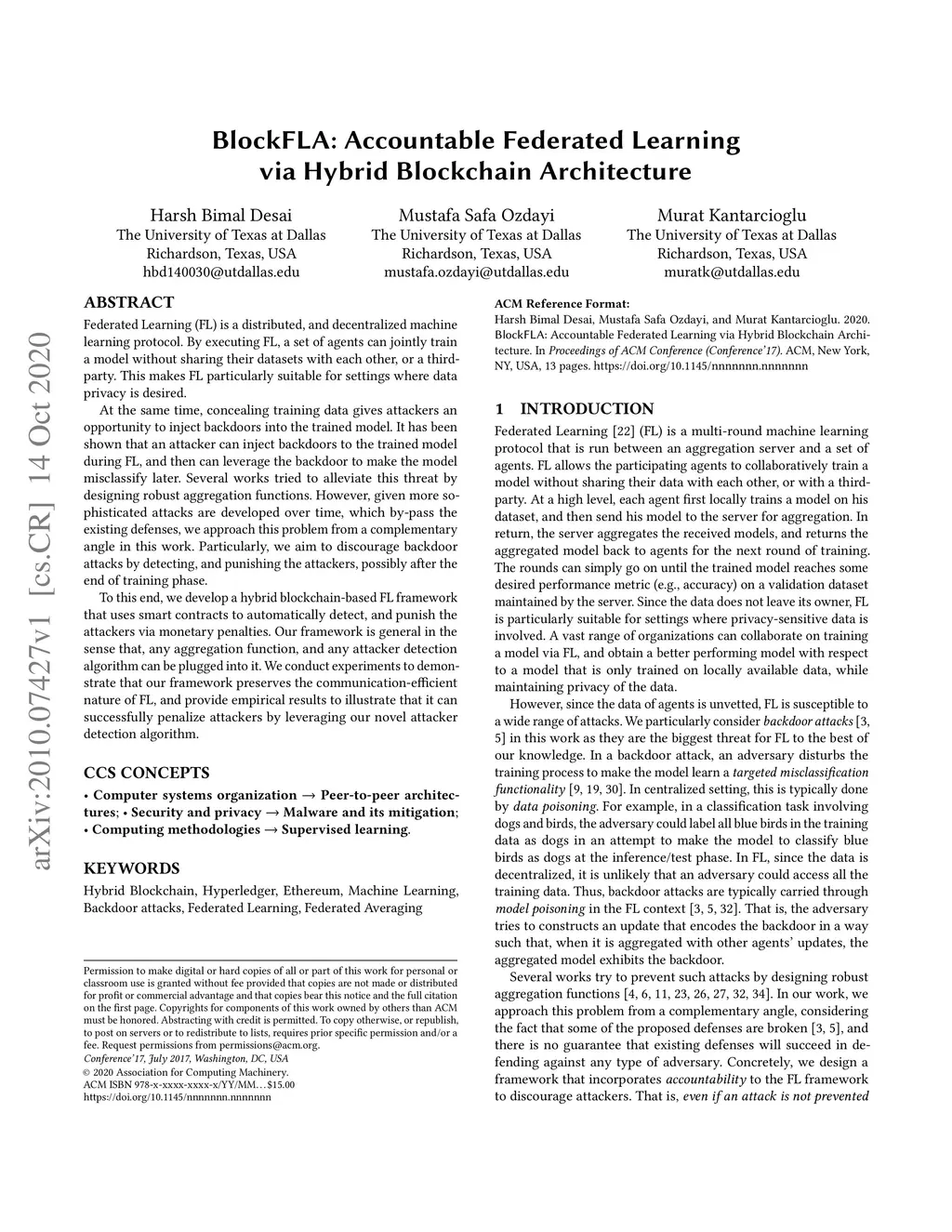 BlockFLA: Accountable Federated Learning via Hybrid Blockchain