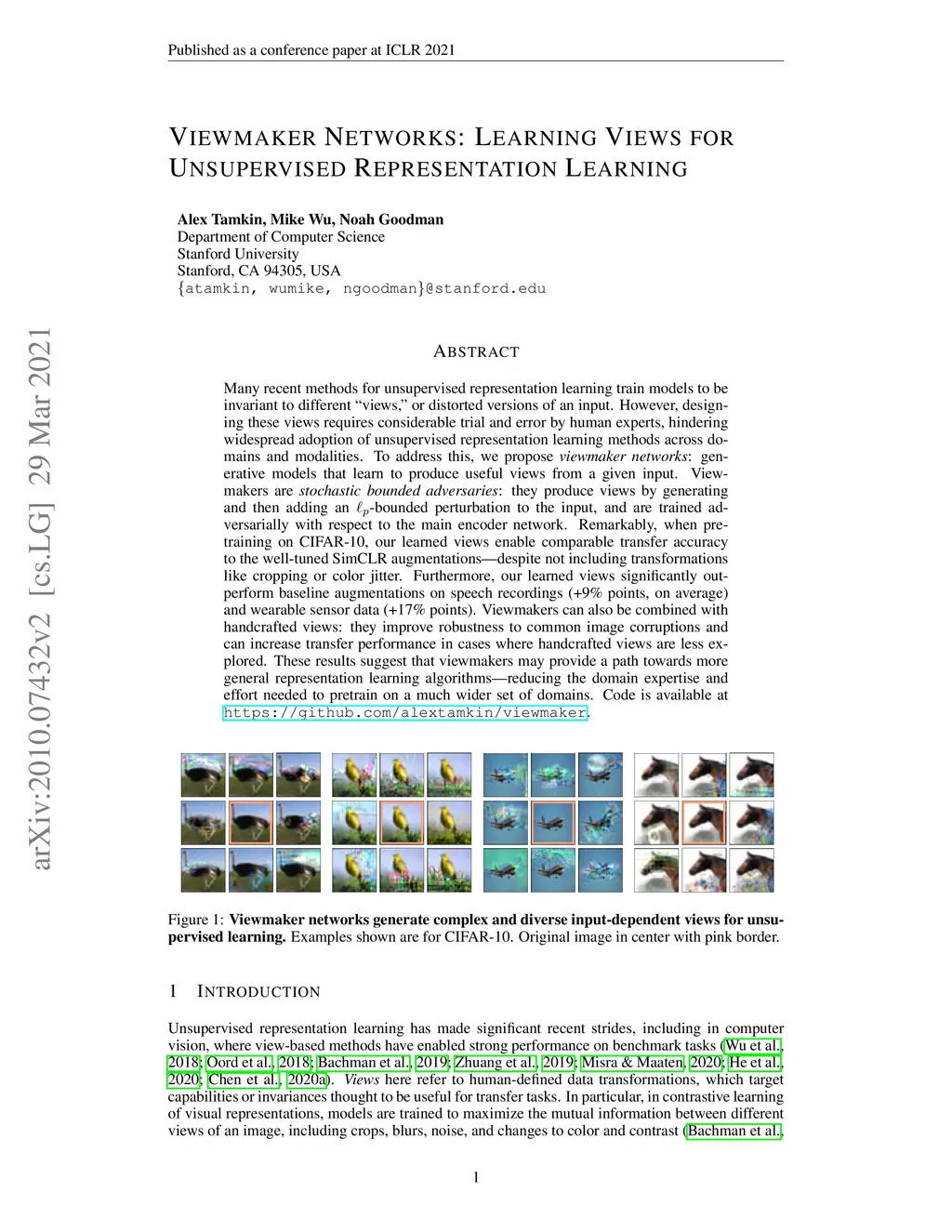 Viewmaker Networks: Learning Views for Unsupervised Representation