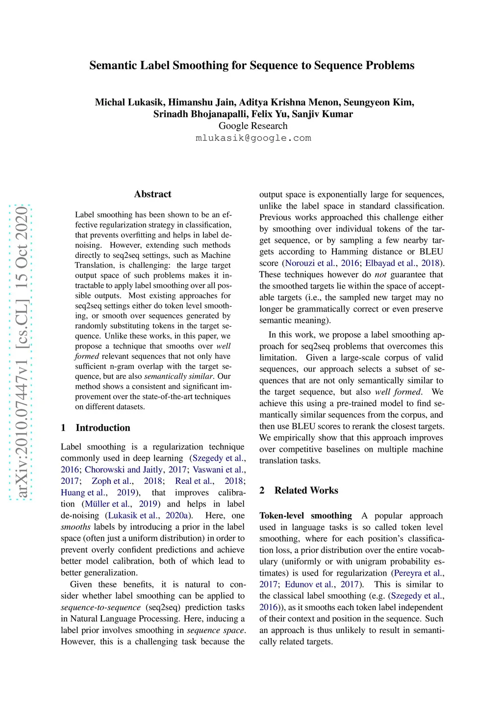 Semantic Label Smoothing for Sequence to Sequence Problems