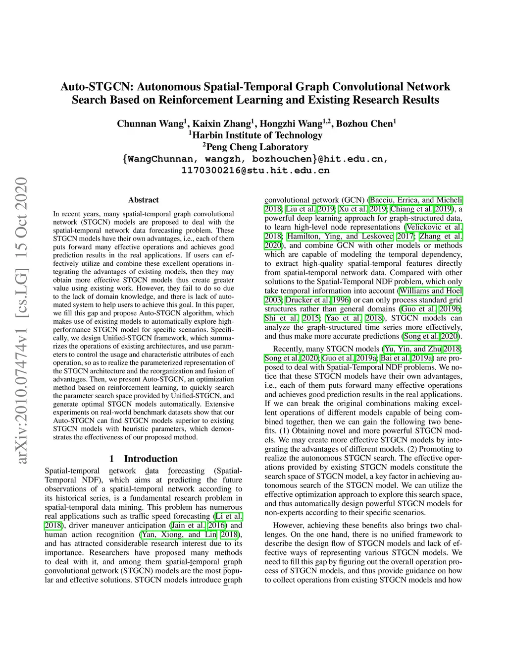 Auto-STGCN: Autonomous Spatial-Temporal Graph Convolutional Network