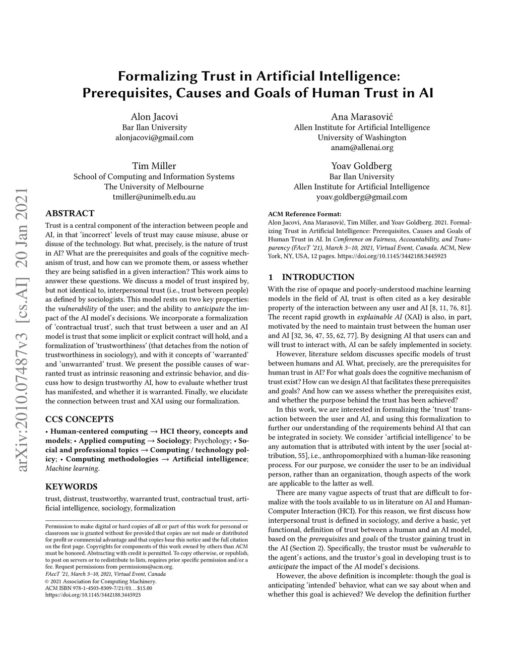 Formalizing Trust in Artificial Intelligence: Prerequisites, Causes and