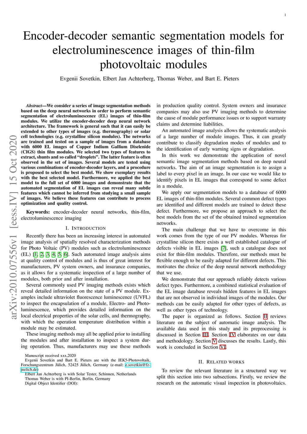 Encoder-decoder semantic segmentation models for electroluminescence