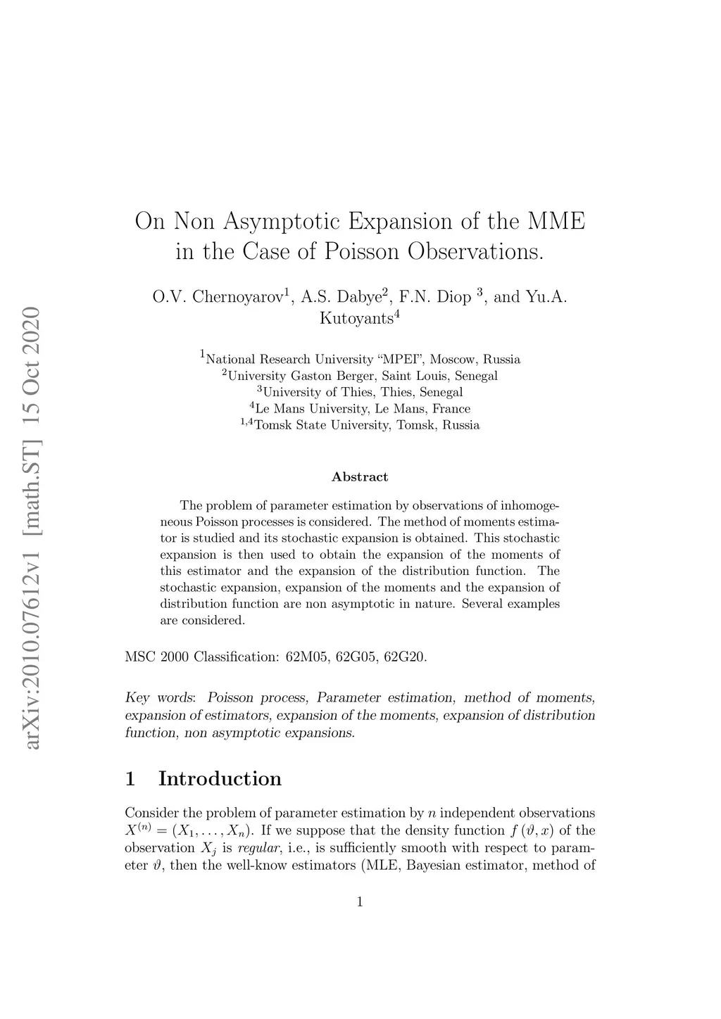 On Non Asymptotic Expansion of the MME in the Case of Poisson