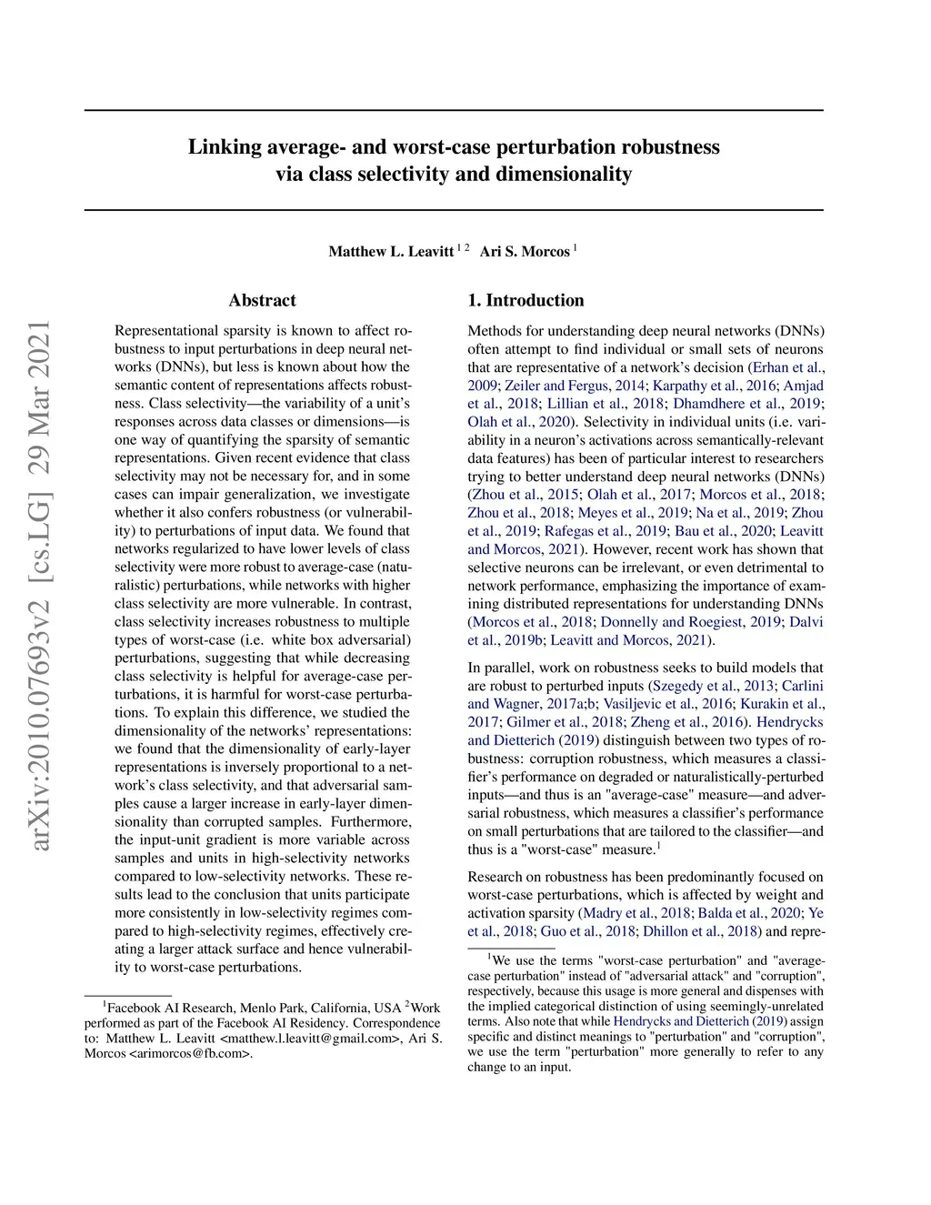 Representational sparsity is known to affect robustness to input perturbations in deep neural networks (DNNs), but less is known about how the semantic content of representations affects robustness. Class selectivity-the variability of a unit's responses across data classes or dimensions-is one way of quantifying the sparsity of semantic representations. Given recent evidence that class selectivity may not be necessary for, and in some cases can impair generalization, we investigate whether it also confers robustness (or vulnerability) to perturbations of input data. We found that networks regularized to have lower levels of class selectivity were more robust to average-case (naturalistic) perturbations, while networks with higher class selectivity are more vulnerable. In contrast, class selectivity increases robustness to multiple types of worst-case (i.e. white box adversarial) perturbations, suggesting that while decreasing class selectivity is helpful for average-case perturbations, it is harmful for worst-case perturbations. To explain this difference, we studied the dimensionality of the networks' representations: we found that the dimensionality of early-layer representations is inversely proportional to a network's class selectivity, and that adversarial samples cause a larger increase in early-layer dimensionality than corrupted samples. Furthermore, the input-unit gradient is more variable across samples and units in high-selectivity networks compared to low-selectivity networks. These results lead to the conclusion that units participate more consistently in low-selectivity regimes compared to high-selectivity regimes, effectively creating a larger attack surface and hence vulnerability to worst-case perturbations.
