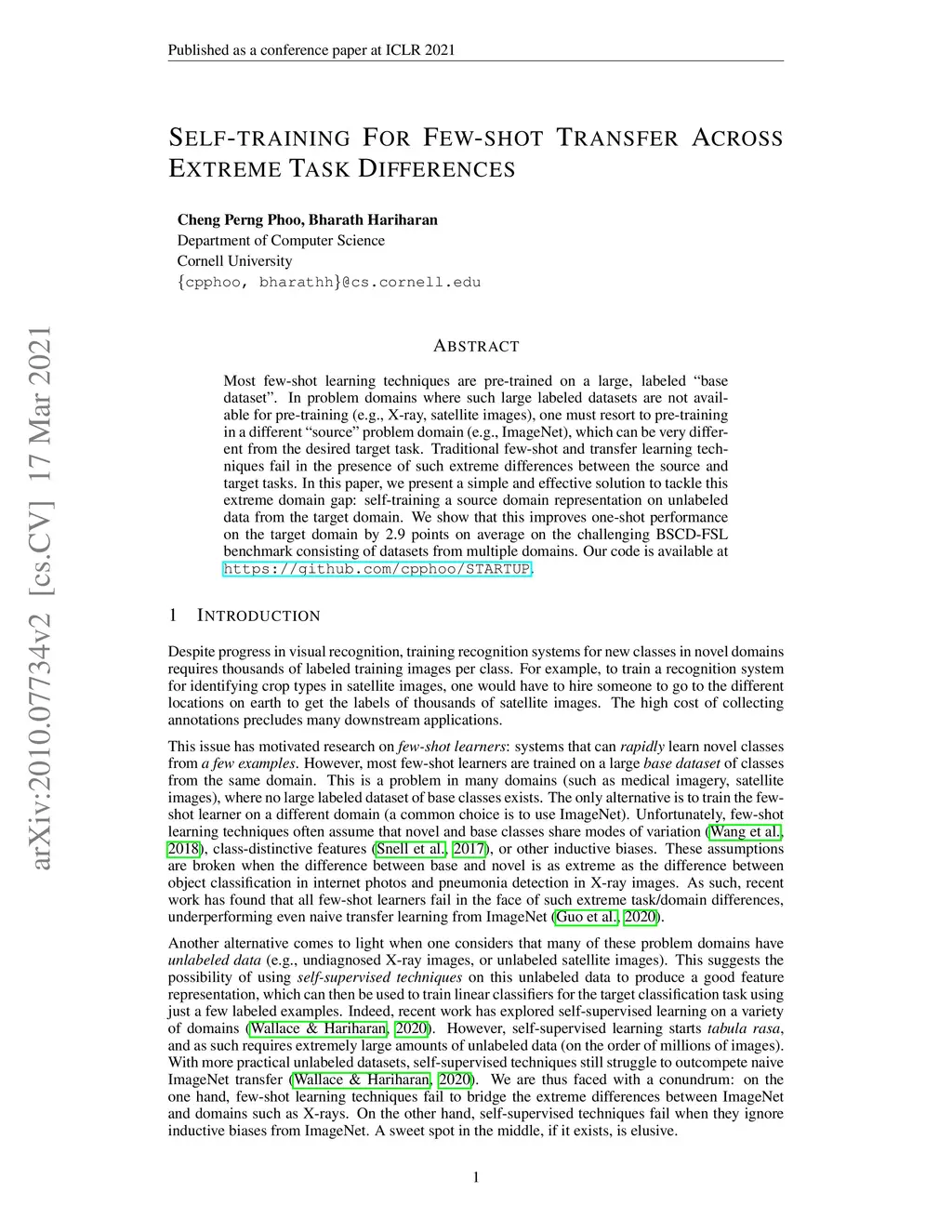 Self-training for Few-shot Transfer Across Extreme Task Differences