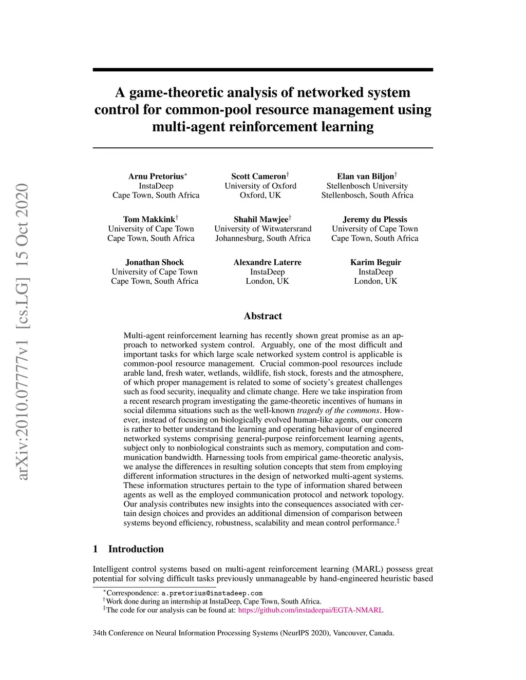 A game-theoretic analysis of networked system control for common-pool