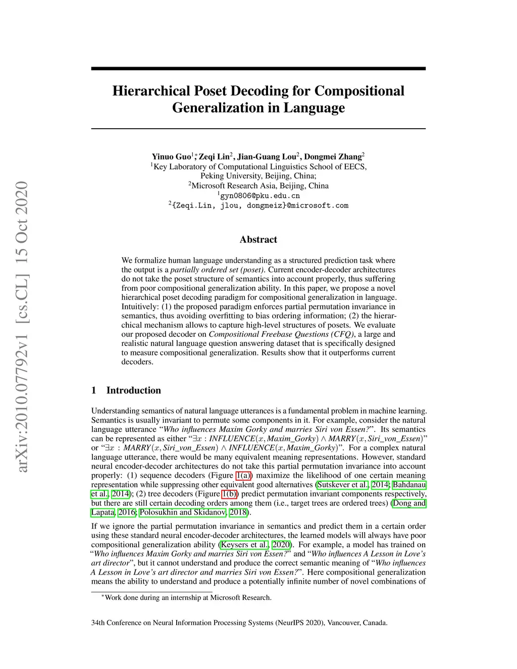 Hierarchical Poset Decoding for Compositional Generalization in Language
